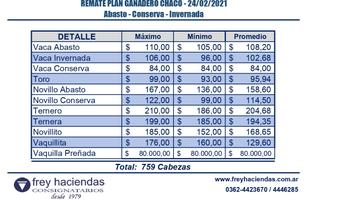 Remate Plan Ganadero CHACO, 24/02/2021. ...