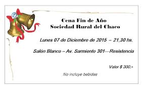 Se invita a participar de la cena de Fin de Año a realizarse el día 07/12/2015 a las 21:30 horas, en el Salón Blanco de la Sociedad Rural.