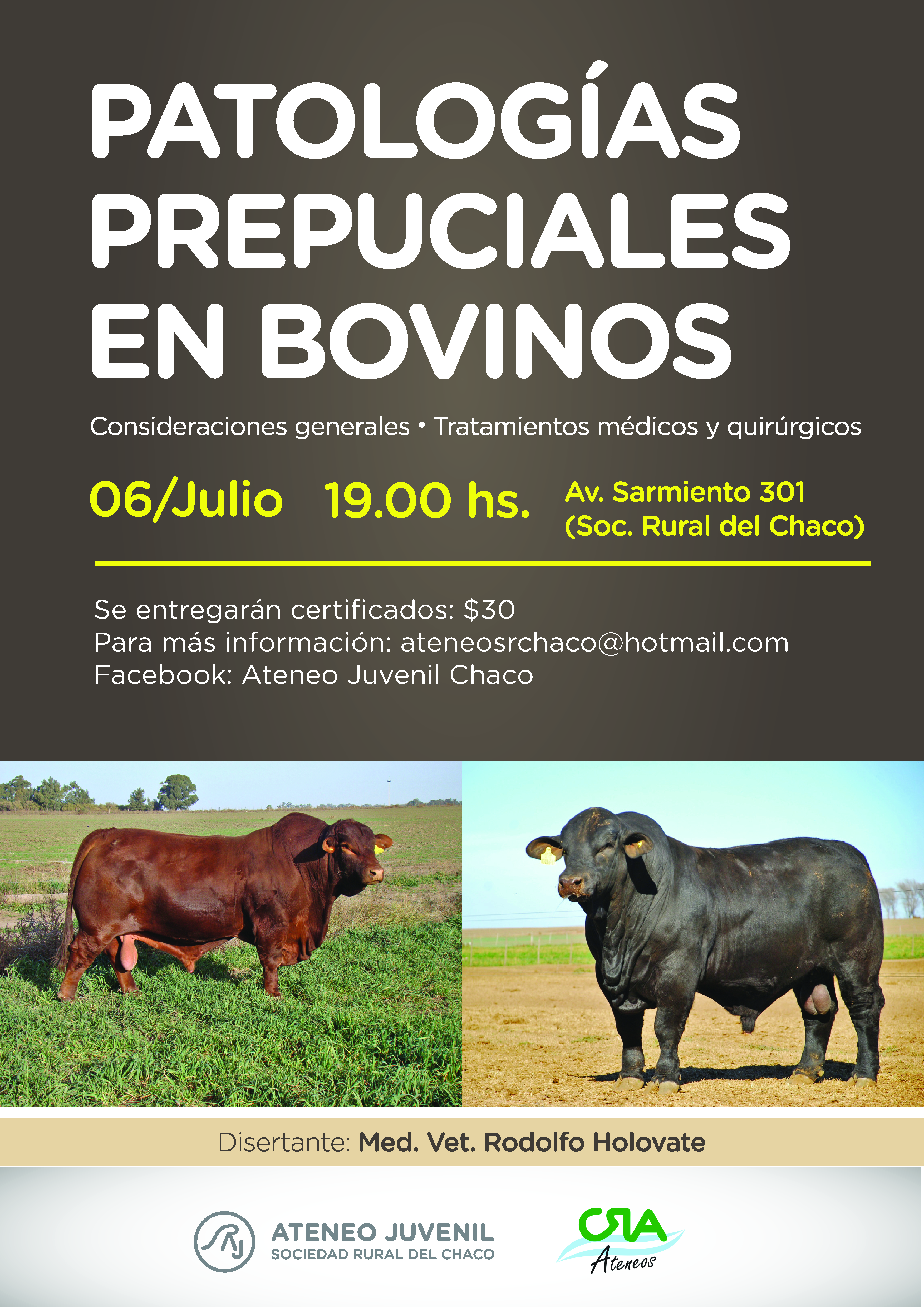 Se invita a productores y público interesado a la charla sobre "Patologías Prepuciales en Bovinos" a realizarse el día 06/07/2016 a partir de las 19:00 hs. en nuestra Sede Social.