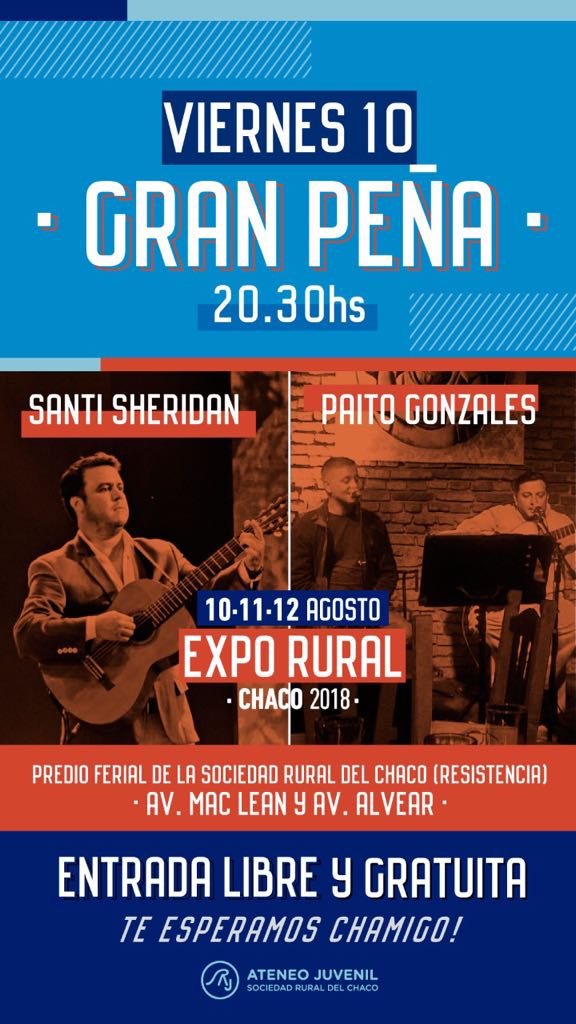 El Viernes 10 de Agosto a las 20:30, te intivamos a la Peña a realizarse en el Predio de la Sociedad Rural del Chaco.