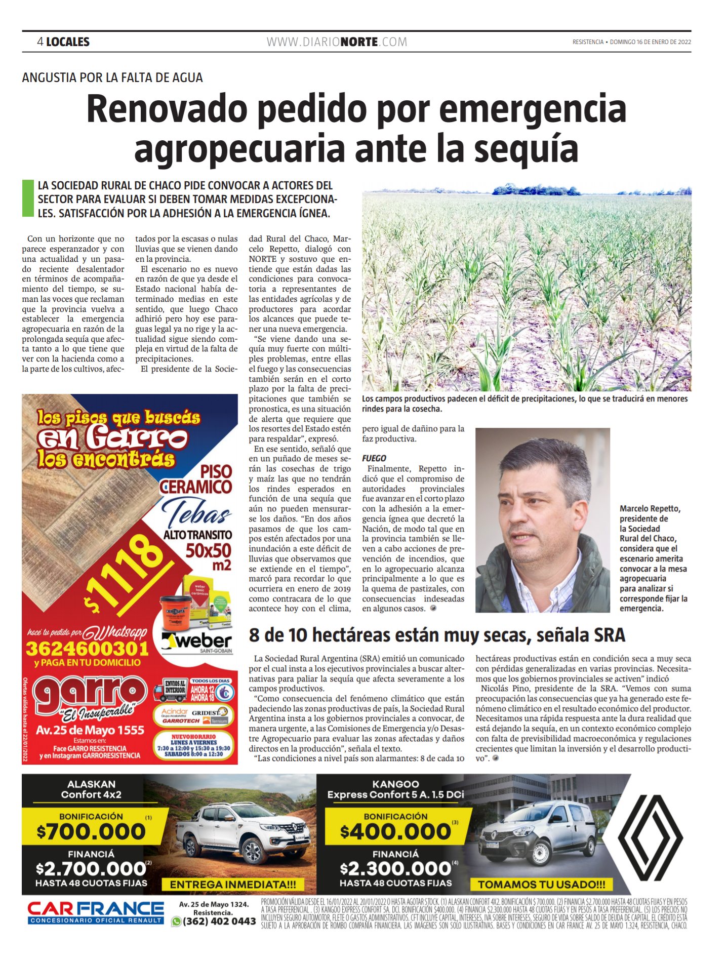 RENOVADO PEDIDO POR EMERGENCIA AGROPECUARIA ANTE LA SEQUIA